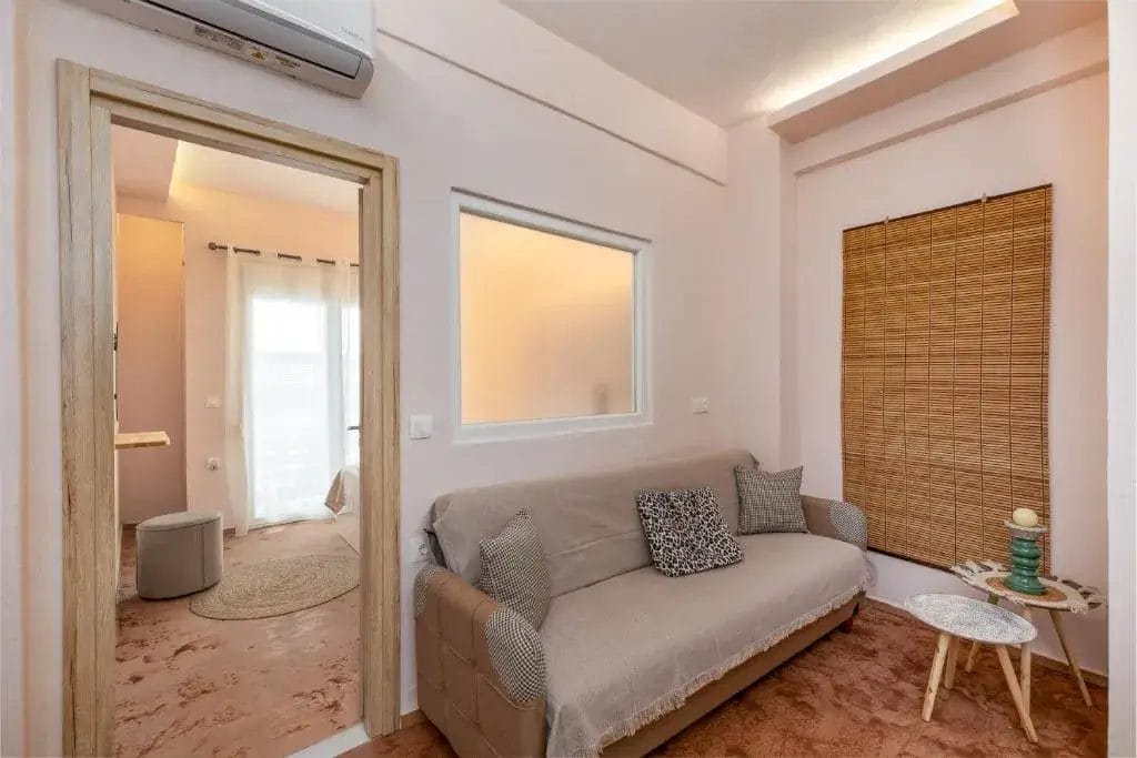 Casa De Stella 2-3 is located in Limenas, Thassos, and offers newly built accommodation of 36 square meters.These apartments are ideal for families with one child, couples, three adults, or families with two children up to 15 years old. This accommodation features a living room with a fully renovated kitchen, equipped with all the necessary cooking utensils. Next to the cozy seating area, there is a sofa bed suitable for one adult or two children up to 15 years old.