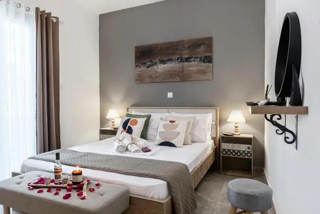 Margio Bay Apartment is a modern 93-square-meter accommodation located in Limenas, Thassos. Situated directly in front of the picturesque Limanaki beach, it offers guests immediate access to the sea, local restaurants, and vibrant beach bars.
