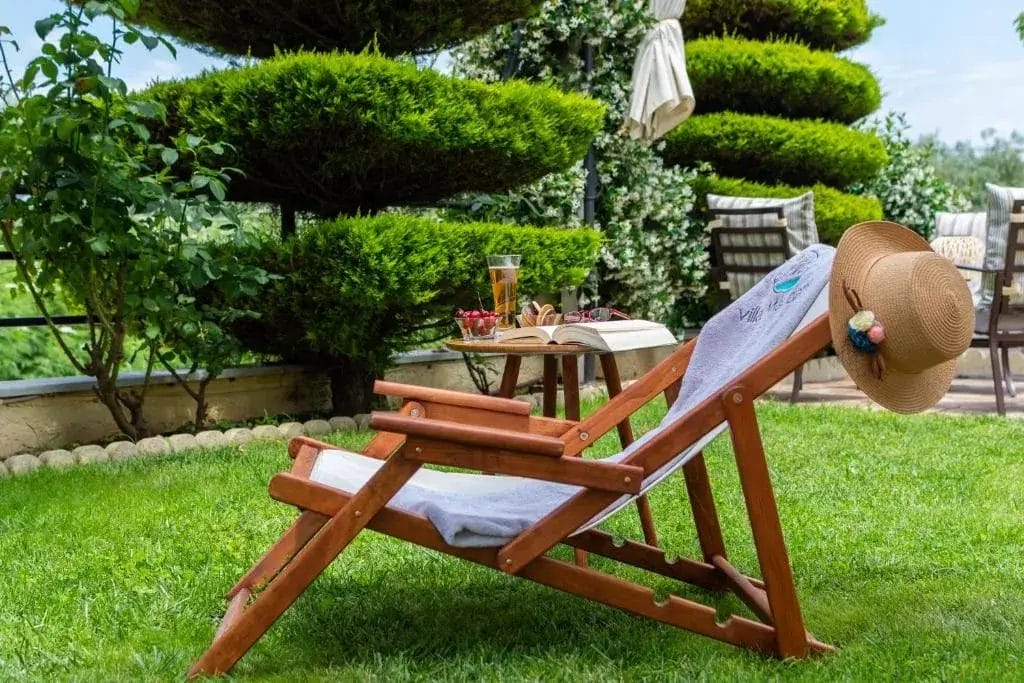 Spacious garden with lawn and seating