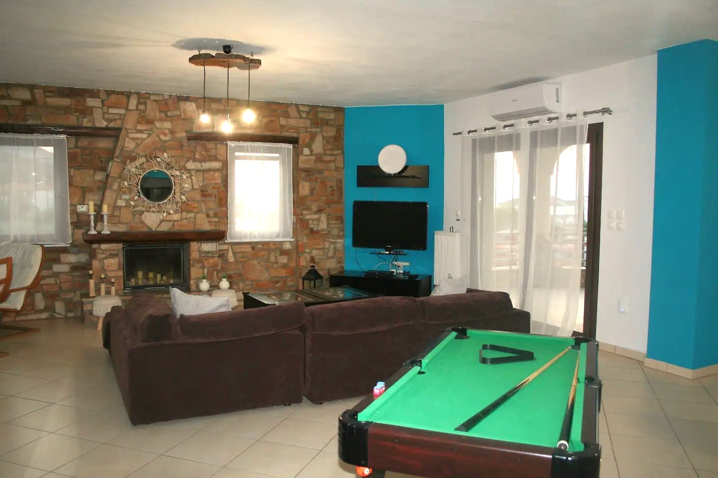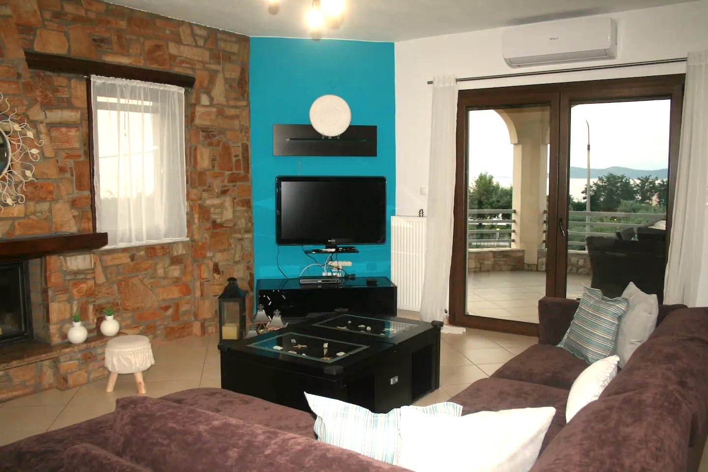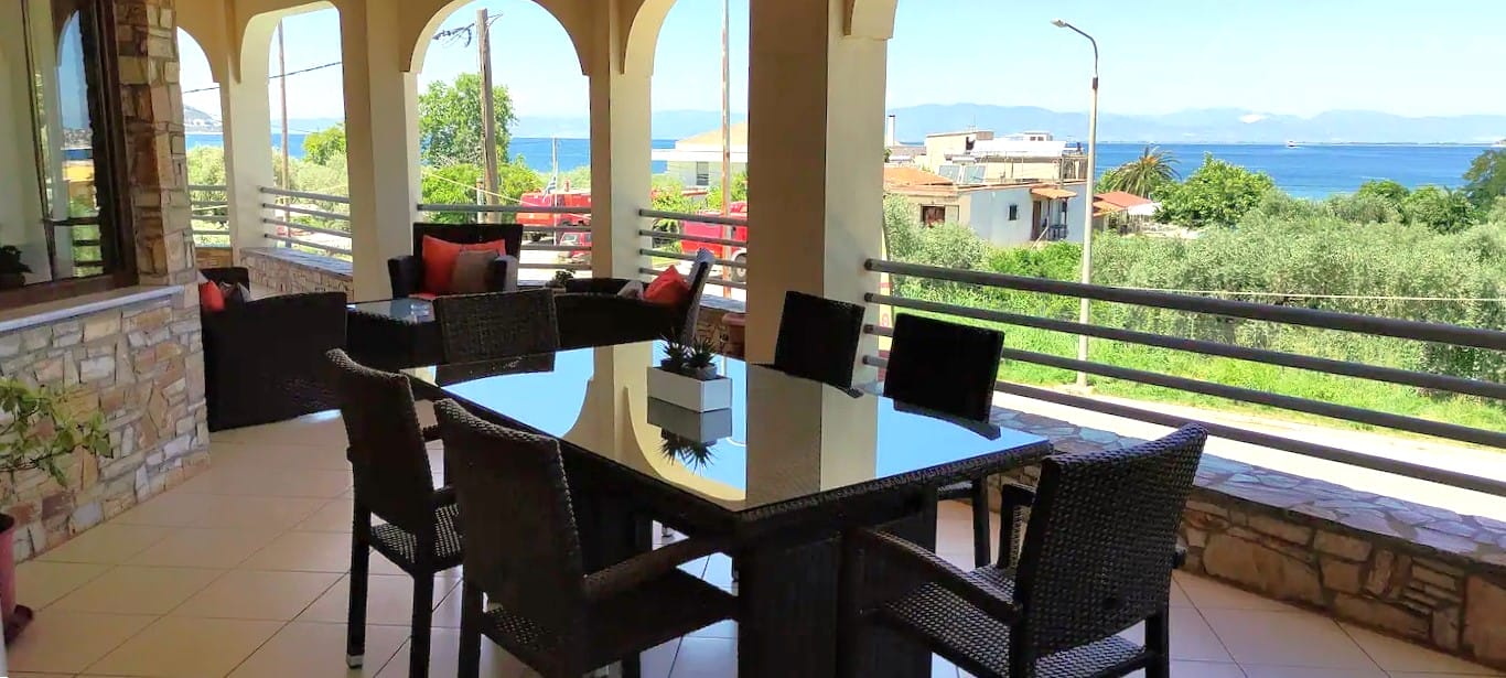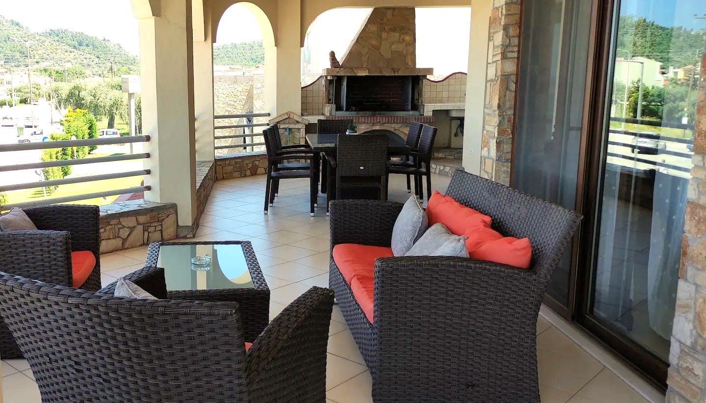 Villa Moschoula in Limenas, Thassos, offering 5 bedrooms, modern amenities, and a scenic balcony with sea views, perfect for families.